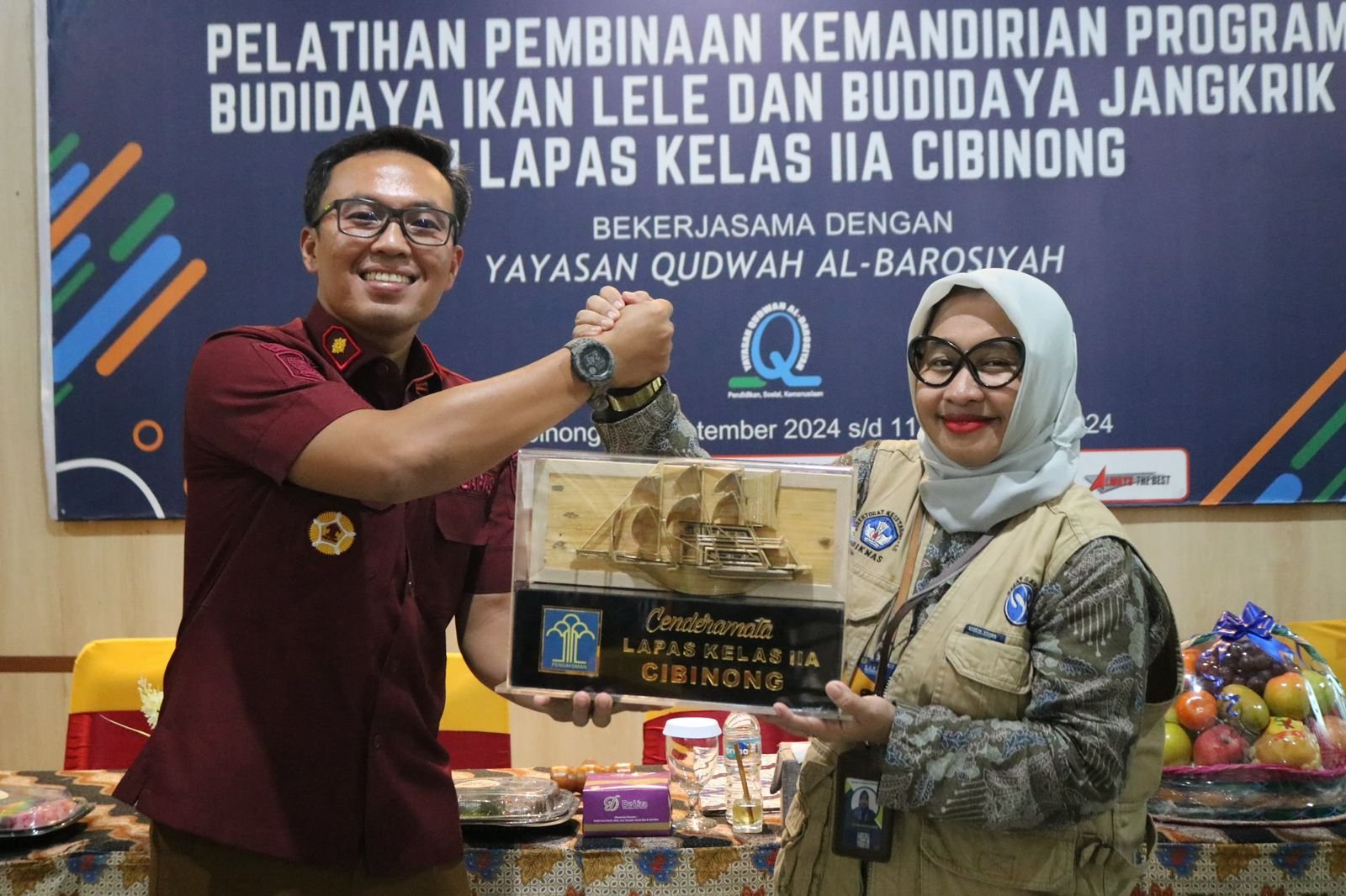 Pada kesempatan yang sama, Perwakilan dari Mitra yayasan qudwah al-barosiyah menyampaikan ucapan terima kasih kesediaan dari Lapas Cibinong atas kerjasama dalam pelatihan ikan lele dan jangkrik.