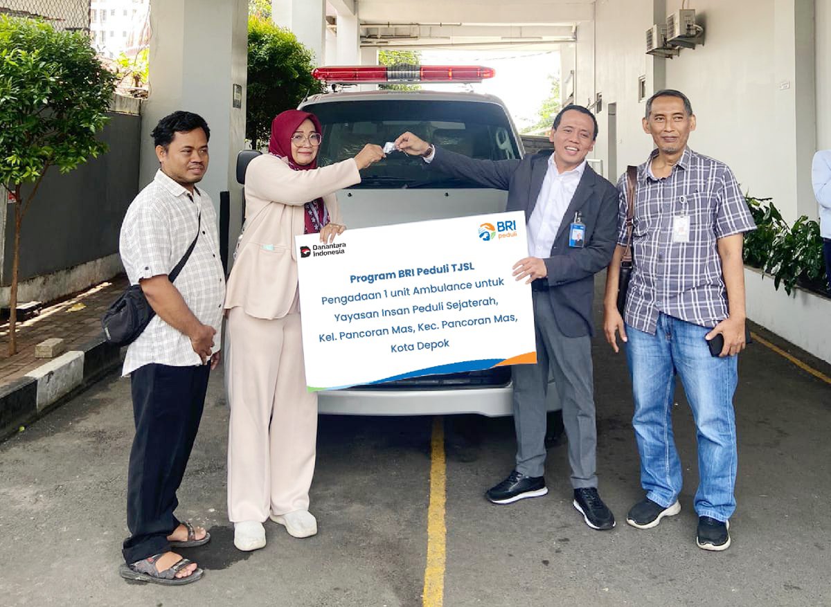 Harnas.id, DEPOK — Bank Rakyat Indonesia (BRI) Kantor Cabang Depok menyalurkan bantuan program Tanggung Jawab Sosial dan Lingkungan (TJSL) berupa satu unit ambulans kepada Yayasan Insan Peduli Sejahtera, yang berlokasi di Kecamatan Pancoranmas, Kota Depok.