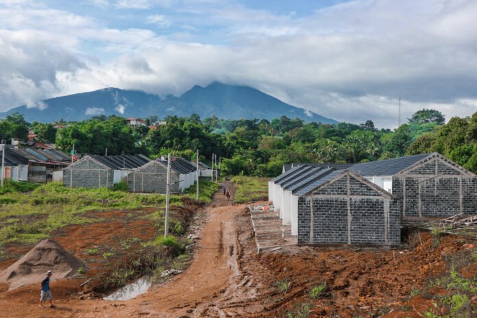 Seorang Warga sedang melewati jalan tanah yang sedang dibangun di salah satu Perumahan bersubsidi BTN Ciapus, Bogor, Jawa Barat, Indonesia. Selasa (14 Januari 2025). PT Bank Tabungan Negara (Persero) Tbk (BTN) memacu penyaluran Kredit Pembiayaan Rumah Sejahtera Fasilitas Likuiditas Pembiayaan Perumahan (KPR Sejahtera FLPP)