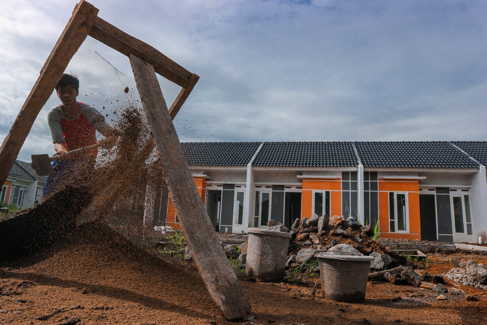 Seorang buruh bangunan sedang mengayak pasir di salah satu Perumahan bersubsidi BTN Ciapus, Bogor, Jawa Barat, Indonesia. Selasa (14 Januari 2025). PT Bank Tabungan Negara (Persero) Tbk (BTN) memacu penyaluran Kredit Pembiayaan Rumah Sejahtera Fasilitas Likuiditas Pembiayaan Perumahan (KPR Sejahtera FLPP)Tampilan beberapa bangunan rumah di salah satu Perumahan bersubsidi BTN Ciapus, Bogor, Jawa Barat, Indonesia. Selasa (14 Januari 2025). PT Bank Tabungan Negara (Persero) Tbk (BTN) memacu penyaluran Kredit Pembiayaan Rumah Sejahtera Fasilitas Likuiditas Pembiayaan Perumahan (KPR Sejahtera FLPP).Seorang buruh bangunan membawa pipa untuk menyambung aliran air di salah satu Perumahan bersubsidi BTN Ciapus, Bogor, Jawa Barat, Indonesia. Selasa (14 Januari 2025). PT Bank Tabungan Negara (Persero) Tbk (BTN) memacu penyaluran Kredit Pembiayaan Rumah Sejahtera Fasilitas Likuiditas Pembiayaan Perumahan (KPR Sejahtera FLPP)Seorang Warga sedang melewati jalan tanah yang sedang dibangun di salah satu Perumahan bersubsidi BTN Ciapus, Bogor, Jawa Barat, Indonesia. Selasa (14 Januari 2025). PT Bank Tabungan Negara (Persero) Tbk (BTN) memacu penyaluran Kredit Pembiayaan Rumah Sejahtera Fasilitas Likuiditas Pembiayaan Perumahan (KPR Sejahtera FLPP)
