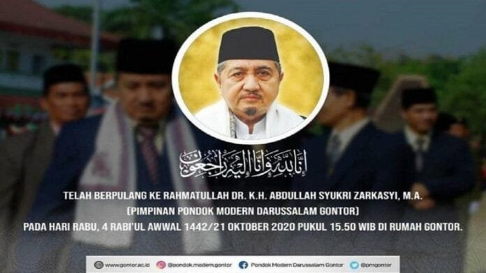 KH. Abdullah Syukri Zarkasi meninggal dunia, Rabu, (21/10/2020) pukul 15.50 WIB di Gontor Ponorogo.
