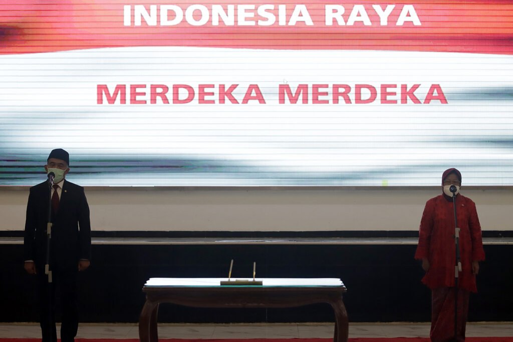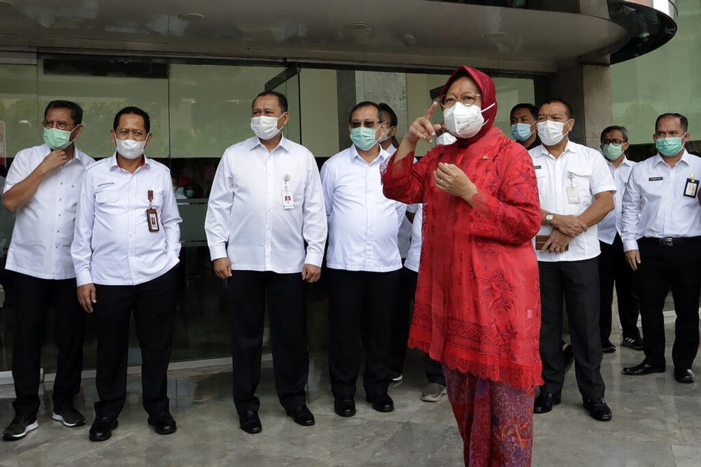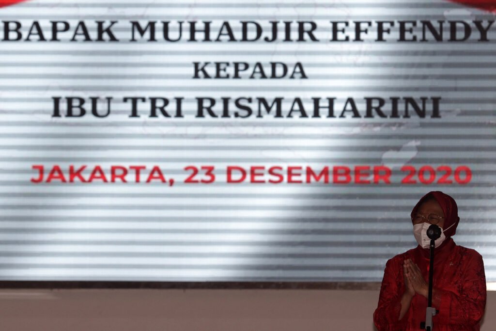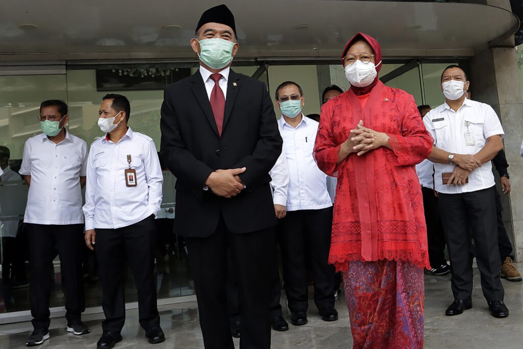 Menteri Koordinator Bidang Pembangunan Manusia dan Kebudayaan yang juga Menteri Sosial Ad Interim Muhajir Effendi (kiri) bersama Menteri Sosial Tri Rismaharini mendengarkan lagu Indonesia Raya saat acara serah terima jabatan Menteri Sosial di Kantor Kementerian Sosial, Jakarta, Rabu (23/12/2020). Tri Rismaharini resmi dipilih dan dilantik Presiden Joko Widodo sebagai Menteri Sosial menggantikan Juliari P Batubara yang tersandung kasus korupsi dana bantuan sosial (bansos) COVID-19. HARNAS.ID | BARRI FATHAILAHMenteri Koordinator Bidang Pembangunan Manusia dan Kebudayaan yang juga Menteri Sosial Ad Interim Muhajir Effendi (kiri) bersama Menteri Sosial Tri Rismaharini menunjukkan berkas berita acara usai penandatanganan serah terima jabatan Menteri Sosial di Kantor Kementerian Sosial, Jakarta, Rabu (23/12/2020). Tri Rismaharini resmi dipilih dan dilantik Presiden Joko Widodo sebagai Menteri Sosial menggantikan Juliari P Batubara yang tersandung kasus korupsi dana bantuan sosial (bansos) COVID-19. HARNAS.ID | BARRI FATHAILAHMenteri Sosial Tri Rismaharini menyampaikan sambutan saat acara serah terima jabatan Menteri Sosial di Kantor Kementerian Sosial, Jakarta, Rabu (23/12/2020). Tri Rismaharini resmi dipilih dan dilantik Presiden Joko Widodo sebagai Menteri Sosial menggantikan Juliari P Batubara yang tersandung kasus korupsi dana bantuan sosial (bansos) COVID-19. HARNAS.ID | BARRI FATHAILAHMenteri Koordinator Bidang Pembangunan Manusia dan Kebudayaan yang juga pejabat lama Menteri Sosial Ad Interim Muhajir Effendi (kiri) bersama Menteri Sosial Tri Rismaharini dan para staf usai acara serah terima jabatan Menteri Sosial di Kantor Kementerian Sosial, Jakarta, Rabu (23/12/2020). Tri Rismaharini resmi dipilih dan dilantik Presiden Joko Widodo sebagai Menteri Sosial menggantikan Juliari P Batubara yang tersandung kasus korupsi dana bantuan sosial (bansos) COVID-19. HARNAS.ID | BARRI FATHAILAHMenteri Sosial Tri Rismaharini (kebaya merah) bersama para staf usai acara serah terima jabatan Menteri Sosial di Kantor Kementerian Sosial, Jakarta, Rabu (23/12/2020). Tri Rismaharini resmi dipilih dan dilantik Presiden Joko Widodo sebagai Menteri Sosial menggantikan Juliari P Batubara yang tersandung kasus korupsi dana bantuan sosial (bansos) COVID-19. HARNAS.ID | BARRI FATHAILAH