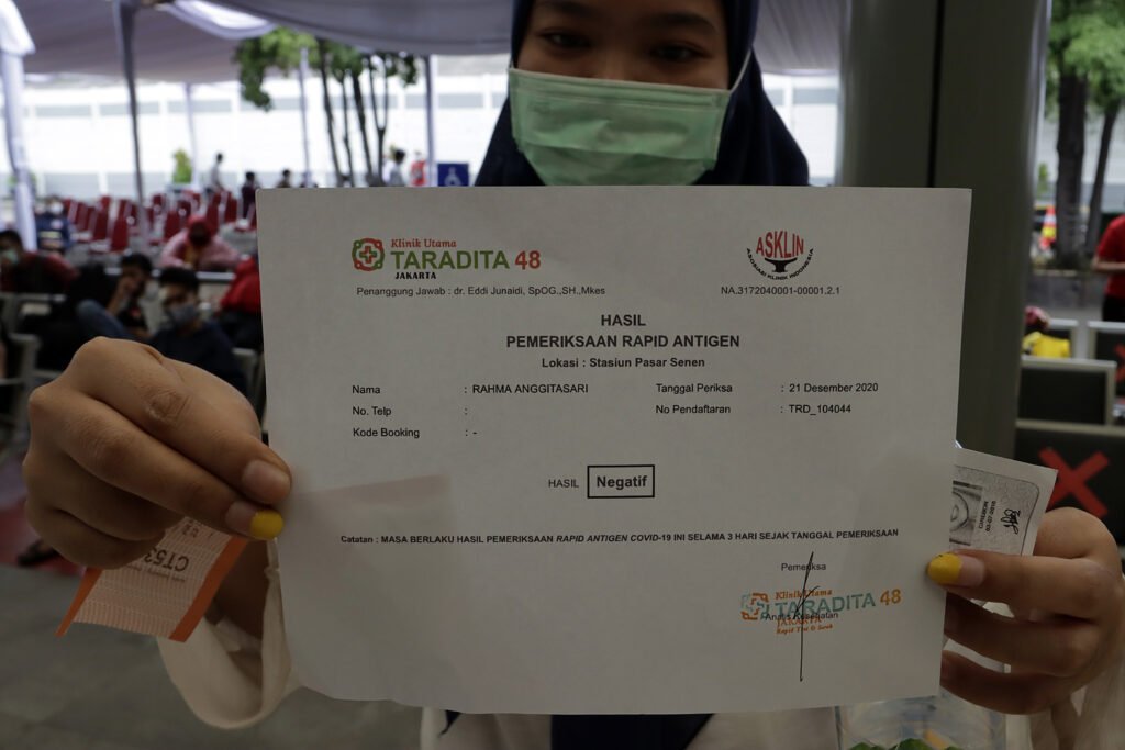 Calon penumpang kereta jarak jauh mengantre untuk mengikuti tes cepat antigen di Stasiun Pasar Senen, Jakarta, Selasa (22/12/2020). PT Kereta Api Indonesia (Persero) atau KAI menyediakan layanan rapid test antigen di sejumlah stasiun yang melayani perjalanan jarak jauh mulai 21 Desember 2020, untuk mendukung kebijakan pemerintah dalam menerapkan protokol kesehatan. HARNAS.ID | BARRI FATHAILAHCalon penumpang kereta jarak jauh mengantre untuk mengikuti tes cepat antigen di Stasiun Pasar Senen, Jakarta, Selasa (22/12/2020). PT Kereta Api Indonesia (Persero) atau KAI menyediakan layanan rapid test antigen di sejumlah stasiun yang melayani perjalanan jarak jauh mulai 21 Desember 2020, untuk mendukung kebijakan pemerintah dalam menerapkan protokol kesehatan. HARNAS.ID | BARRI FATHAILAHCalon penumpang kereta jarak jauh mengikuti tes cepat antigen di Stasiun Pasar Senen, Jakarta, Selasa (22/12/2020). PT Kereta Api Indonesia (Persero) atau KAI menyediakan layanan rapid test antigen di sejumlah stasiun yang melayani perjalanan jarak jauh mulai 21 Desember 2020, untuk mendukung kebijakan pemerintah dalam menerapkan protokol kesehatan. HARNAS.ID | BARRI FATHAILAHCalon penumpang kereta jarak jauh mengikuti tes cepat antigen di Stasiun Pasar Senen, Jakarta, Selasa (22/12/2020). PT Kereta Api Indonesia (Persero) atau KAI menyediakan layanan rapid test antigen di sejumlah stasiun yang melayani perjalanan jarak jauh mulai 21 Desember 2020, untuk mendukung kebijakan pemerintah dalam menerapkan protokol kesehatan. HARNAS.ID | BARRI FATHAILAHCalon penumpang kereta jarak jauh mengikuti tes cepat antigen di Stasiun Pasar Senen, Jakarta, Selasa (22/12/2020). PT Kereta Api Indonesia (Persero) atau KAI menyediakan layanan rapid test antigen di sejumlah stasiun yang melayani perjalanan jarak jauh mulai 21 Desember 2020, untuk mendukung kebijakan pemerintah dalam menerapkan protokol kesehatan. HARNAS.ID | BARRI FATHAILAHCalon penumpang kereta jarak jauh mengikuti tes cepat antigen di Stasiun Pasar Senen, Jakarta, Selasa (22/12/2020). PT Kereta Api Indonesia (Persero) atau KAI menyediakan layanan rapid test antigen di sejumlah stasiun yang melayani perjalanan jarak jauh mulai 21 Desember 2020, untuk mendukung kebijakan pemerintah dalam menerapkan protokol kesehatan. HARNAS.ID | BARRI FATHAILAHPetugas medis menunjukkan hasil tes cepat antigen calon penumpang kereta jarak jauh di Stasiun Pasar Senen, Jakarta, Selasa (22/12/2020). PT Kereta Api Indonesia (Persero) atau KAI menyediakan layanan rapid test antigen di sejumlah stasiun yang melayani perjalanan jarak jauh mulai 21 Desember 2020, untuk mendukung kebijakan pemerintah dalam menerapkan protokol kesehatan. HARNAS.ID | BARRI FATHAILAHPetugas medis menunjukkan hasil tes cepat antigen calon penumpang kereta jarak jauh di Stasiun Pasar Senen, Jakarta, Selasa (22/12/2020). PT Kereta Api Indonesia (Persero) atau KAI menyediakan layanan rapid test antigen di sejumlah stasiun yang melayani perjalanan jarak jauh mulai 21 Desember 2020, untuk mendukung kebijakan pemerintah dalam menerapkan protokol kesehatan. HARNAS.ID | BARRI FATHAILAHCalon penumpang kereta jarak jauh menunjukkan hasil pemeriksaan tes cepat antigen di Stasiun Pasar Senen, Jakarta, Selasa (22/12/2020). PT Kereta Api Indonesia (Persero) atau KAI menyediakan layanan rapid test antigen di sejumlah stasiun yang melayani perjalanan jarak jauh mulai 21 Desember 2020, untuk mendukung kebijakan pemerintah dalam menerapkan protokol kesehatan. HARNAS.ID | BARRI FATHAILAHCalon penumpang kereta jarak jauh menunjukkan hasil pemeriksaan tes cepat antigen di Stasiun Pasar Senen, Jakarta, Selasa (22/12/2020). PT Kereta Api Indonesia (Persero) atau KAI menyediakan layanan rapid test antigen di sejumlah stasiun yang melayani perjalanan jarak jauh mulai 21 Desember 2020, untuk mendukung kebijakan pemerintah dalam menerapkan protokol kesehatan. HARNAS.ID | BARRI FATHAILAH