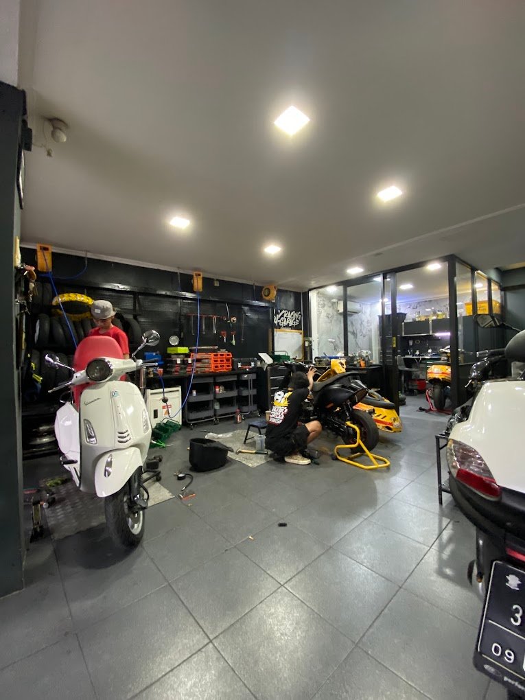Fasilitas: bengkel bersih, alat modern, layanan lengkap – mulai servis rutin, perbaikan mesin, suku cadang, hingga modifikasi dan pengecatan ulang