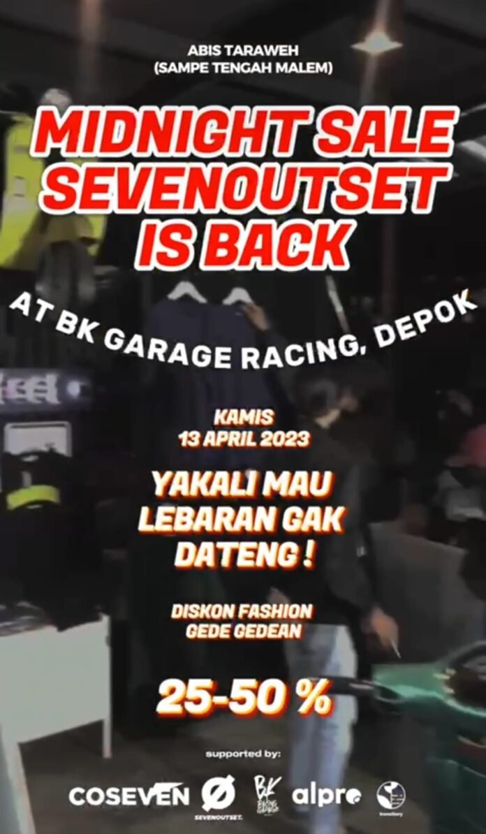 Seperti yang dilakukan Clothing asal Kota Depok, Sevenoutset yang di support penuh oleh Coseven yang membuka outlet atau bazar fashion di malam ramadhan, tentunya dengan menampilkan produk-produk terbaru.
