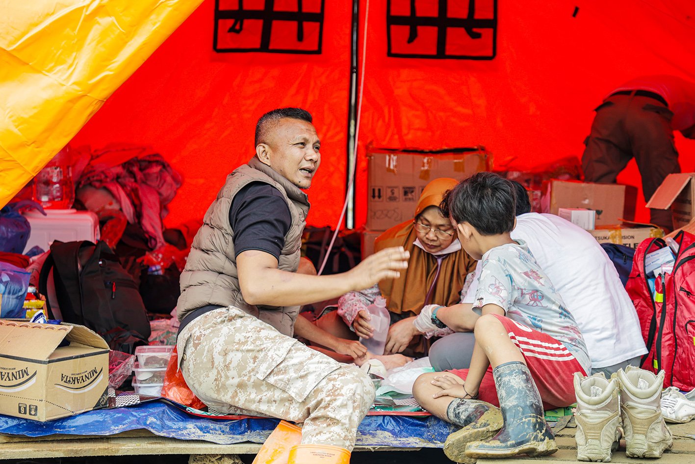 “Mayoritas kasus yang kami tangani adalah luka. Banyak warga yang terluka karena paku, seng, dan pecahan kaca. Bahkan saat pertama tiba di lokasi, kami langsung melakukan pencucian luka pada beberapa warga,” jelasnya.