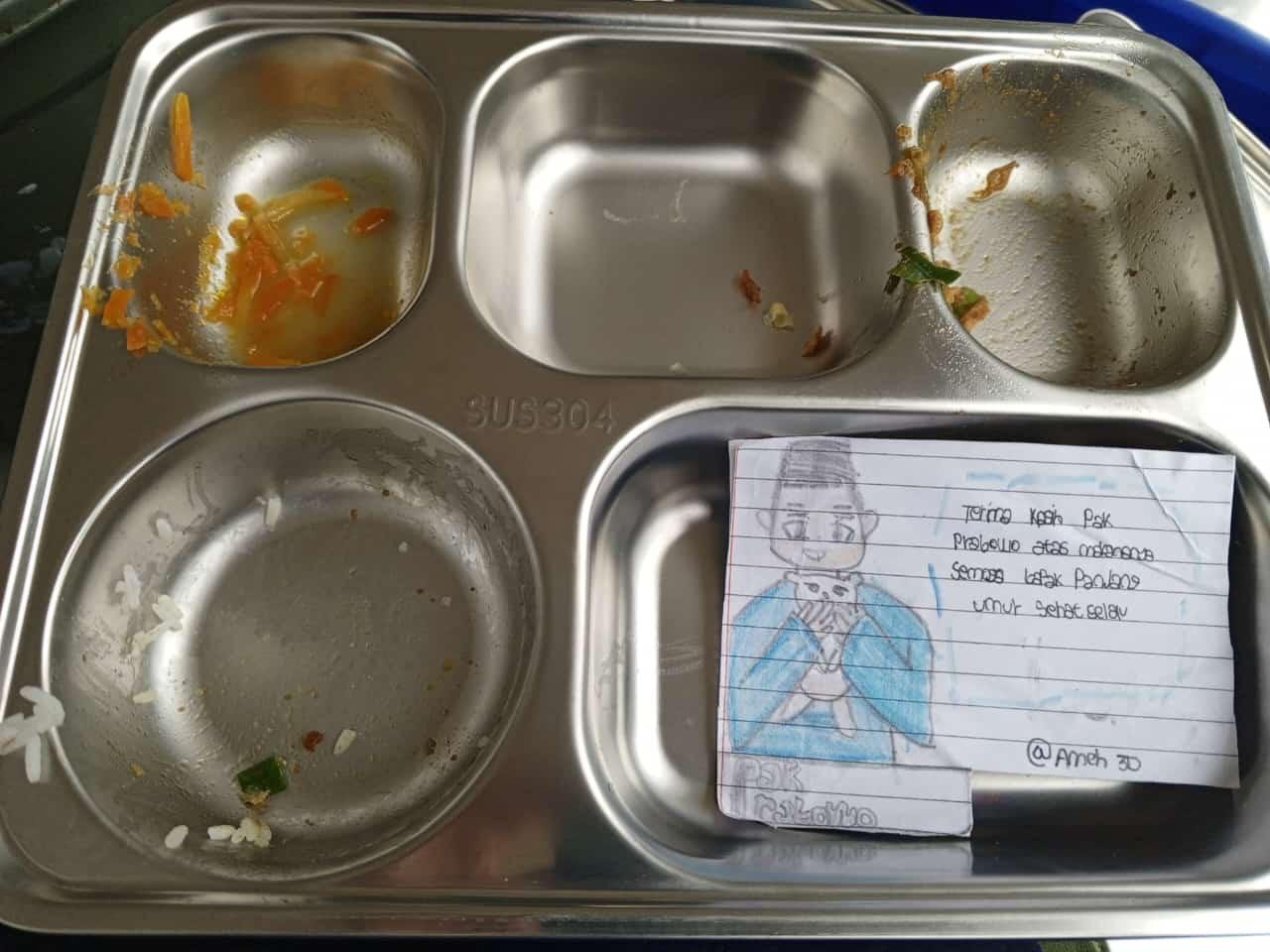 Dalam unggahan yang menjadi viral, tampak tulisan tangan dari siswa-siswa yang ikut menikmati manfaat program tersebut. Salah satu pesan berbunyi,