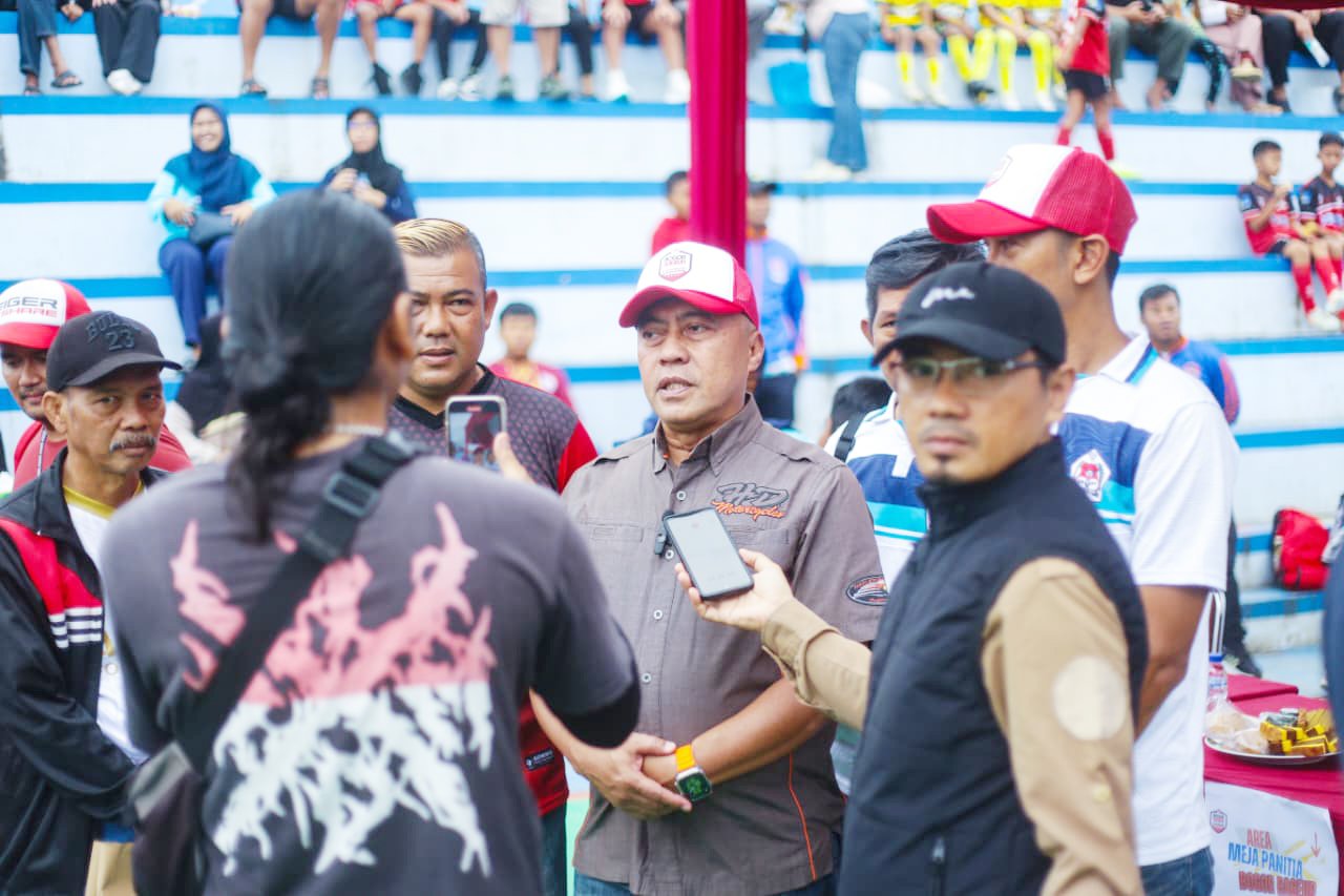 Sekda Kota Bogor Denny Mulyadi memberikan keterangan kepada awak media usai membuka Bogor Bageur Soccer Festival 2026. Foto: Pemkot Bogor.