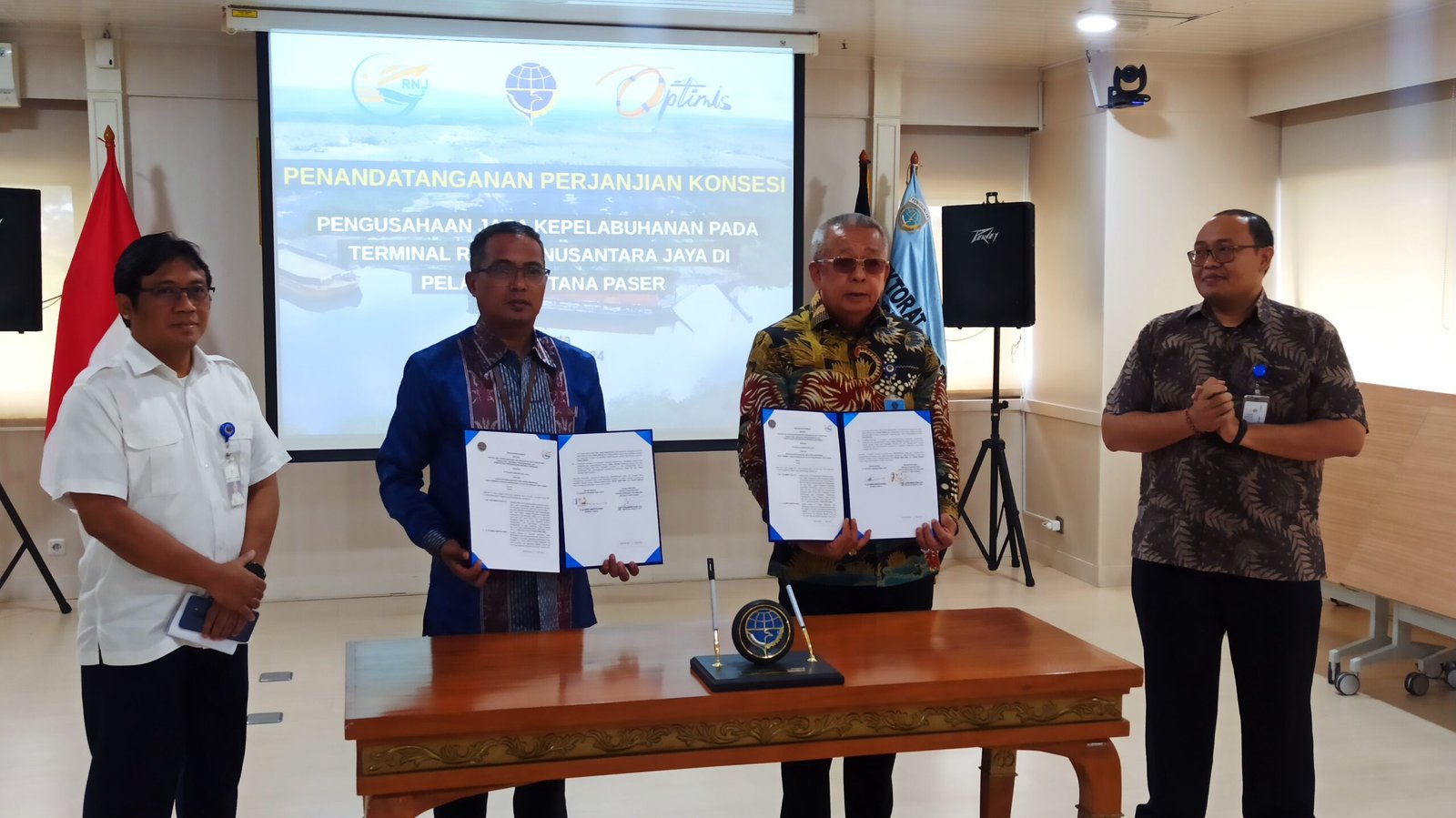 “Penandatanganan konsesi Tentang Penyediaan dan atau Pelayanan Jasa Kepelabuhanan pada Terminal Rugaya Nusantara Jaya di Pelabuhan Tana Paser adalah langkah nyata untuk meningkatkan kuantitas, kualitas, efisiensi pengelolaan dan pemeliharaan dalam penyediaan Jasa Kepelabuhanan serta menjadi dasar dalam memberikan kepastian hukum atas kegiatan pengusahaan jasa kepelabuhanan yang dilakukan oleh Badan Usaha Pelabuhan seperti PT. Rugaya Nusantara Jaya,” beber Dirjen Hubla.