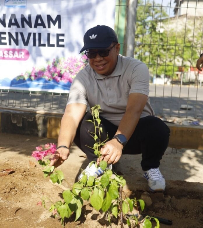 Harnas.id, Makassar – PT Pelabuhan Indonesia (Persero) Regional 4 bersama Persatuan Istri Pegawai (PIP) Pelindo Regional 4 turut serta dalam program penanaman Bunga Bougenville di area Pelabuhan Makassar yang diinisiasi Subholding Pelindo Jasa Maritim (SPJM) sebagai upaya untuk meningkatkan kesadaran akan pentingnya pelestarian lingkungan dan keindahan ruang publik, khususnya di ruang terbuka hijau di area Pelabuhan Makassar.