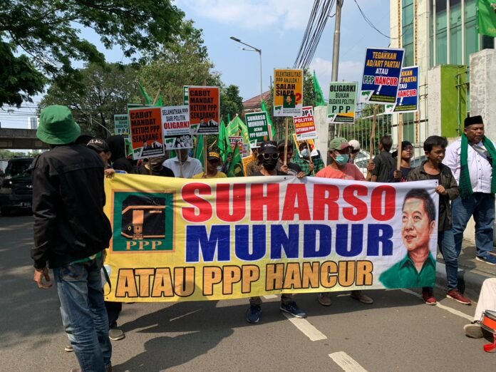 HARNAS.ID – Front Kader Penyelamat Partai (FKPP) Persatuan Pembangunan kembali melakukan aksi di depan Kantor DPP Menteng, Jakarta Pusat. Mereka masih menuntut hal yang sama agar Ketua Umum PPP Suharso Monoarfa mundur dari jabatannya.