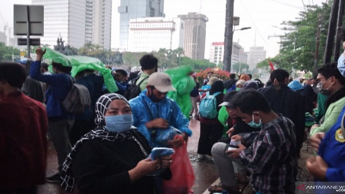Hujan Deras, Peserta Aksi BEM Tolak UU Ciptaker Membubarkan Diri