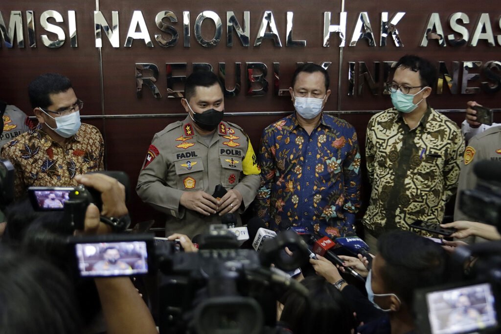 Kapolda Metro Jaya Irjen Pol Fadil Imran (kiri) bersama Ketua Komnas HAM Ahmad Taufan Damanik (tengah), Komisioner Komnas HAM Beka Ulung Hapsara (kanan) dan Komisioner Komnas HAM Amiruddin Al Rahab (belakang) di Kantor Komnas HAM, Menteng, Jakarta, Senin (14/12/2020). Kapolda Metro Jaya Irjen Pol Fadil Imran memenuhi panggilan Komnas HAM, guna dimintai keterangan terkait insiden di Jalan Tol Jakarta-Cikampek yang menewaskan enam laskar FPI akibat ditembak polisi, Senin 7 Desember 2020. HARNAS.ID | BARRI FATHAILAHKomisioner Komnas HAM Beka Ulung Hapsara (kanan) bersama Kapolda Metro Jaya Irjen Pol Fadil Imran (kiri), dan Ketua Komnas HAM Ahmad Taufan Damanik (depan) di Kantor Komnas HAM, Menteng, Jakarta, Senin (14/12/2020). Kapolda Metro Jaya Irjen Pol Fadil Imran memenuhi panggilan Komnas HAM, guna dimintai keterangan terkait insiden di Jalan Tol Jakarta-Cikampek yang menewaskan enam laskar FPI akibat ditembak polisi, Senin 7 Desember 2020. HARNAS.ID | BARRI FATHAILAHKapolda Metro Jaya Irjen Pol Fadil Imran (kedua kiri) bersama Ketua Komnas HAM Ahmad Taufan Damanik (kedua kanan), Komisioner Komnas HAM Beka Ulung Hapsara (kanan) dan Komisioner Komnas HAM Amiruddin Al Rahab (kiri) memberikan keterangan kepada pewarta di Kantor Komnas HAM, Menteng, Jakarta, Senin (14/12/2020). Kapolda Metro Jaya Irjen Pol Fadil Imran memenuhi panggilan Komnas HAM, guna dimintai keterangan terkait insiden di Jalan Tol Jakarta-Cikampek yang menewaskan enam laskar FPI akibat ditembak polisi, Senin 7 Desember 2020. HARNAS.ID | BARRI FATHAILAHKomisioner Komnas HAM Beka Ulung Hapsara menjawab pertanyaan pewarta terkait pemeriksaan Kapolda Metro Jaya Irjen Pol Fadil Imran di Kantor Komnas HAM, Menteng, Jakarta, Senin (14/12/2020). Kapolda Metro Jaya Irjen Pol Fadil Imran memenuhi panggilan Komnas HAM, guna dimintai keterangan terkait insiden di Jalan Tol Jakarta-Cikampek yang menewaskan enam laskar FPI akibat ditembak polisi, Senin 7 Desember 2020. HARNAS.ID | BARRI FATHAILAHKapolda Metro Jaya Irjen Pol Fadil Imran (tengah) bersama Ketua Komnas HAM Ahmad Taufan Damanik (kanan) dan Komisioner Komnas HAM Amiruddin Al Rahab (kiri) memberikan keterangan kepada pewarta di Kantor Komnas HAM, Menteng, Jakarta, Senin (14/12/2020). Kapolda Metro Jaya Irjen Pol Fadil Imran memenuhi panggilan Komnas HAM, guna dimintai keterangan terkait insiden di Jalan Tol Jakarta-Cikampek yang menewaskan enam laskar FPI akibat ditembak polisi, Senin 7 Desember 2020. HARNAS.ID | BARRI FATHAILAH