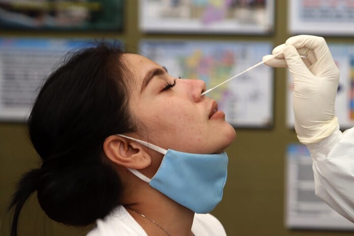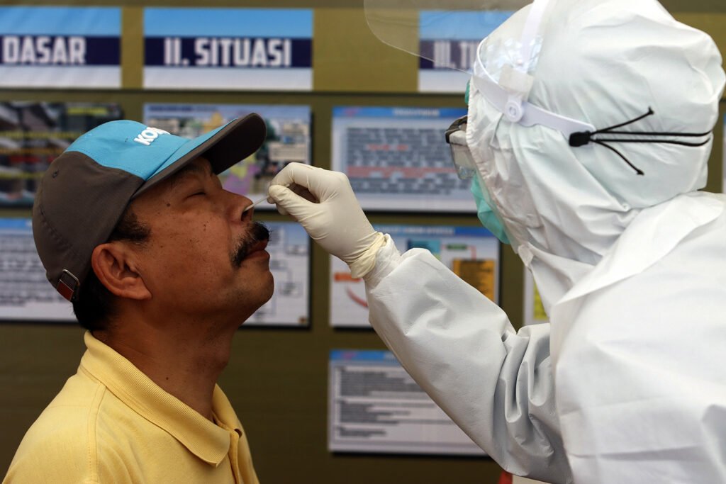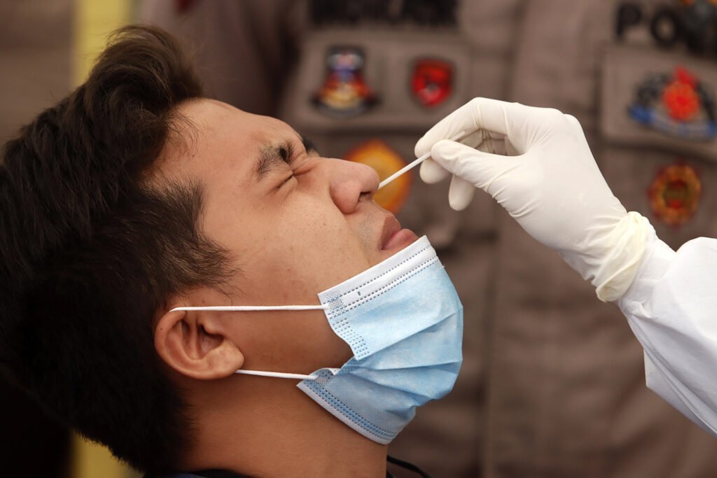 Petugas medis mengambil sampel saat rapid test antigen gratis di kawasan Pondok Indah Mal, Jakarta, Selasa (29/12/2020). Tes cepat antigen ini diselenggarakan oleh Polri untuk masyarakat di 10 Pos Pengamanan Operasi Lilin 2020 di wilayah Jakarta Selatan pada libur Natal 2020 dan Tahun Baru 2021. HARNAS.ID | BARRI FATHAILAH
