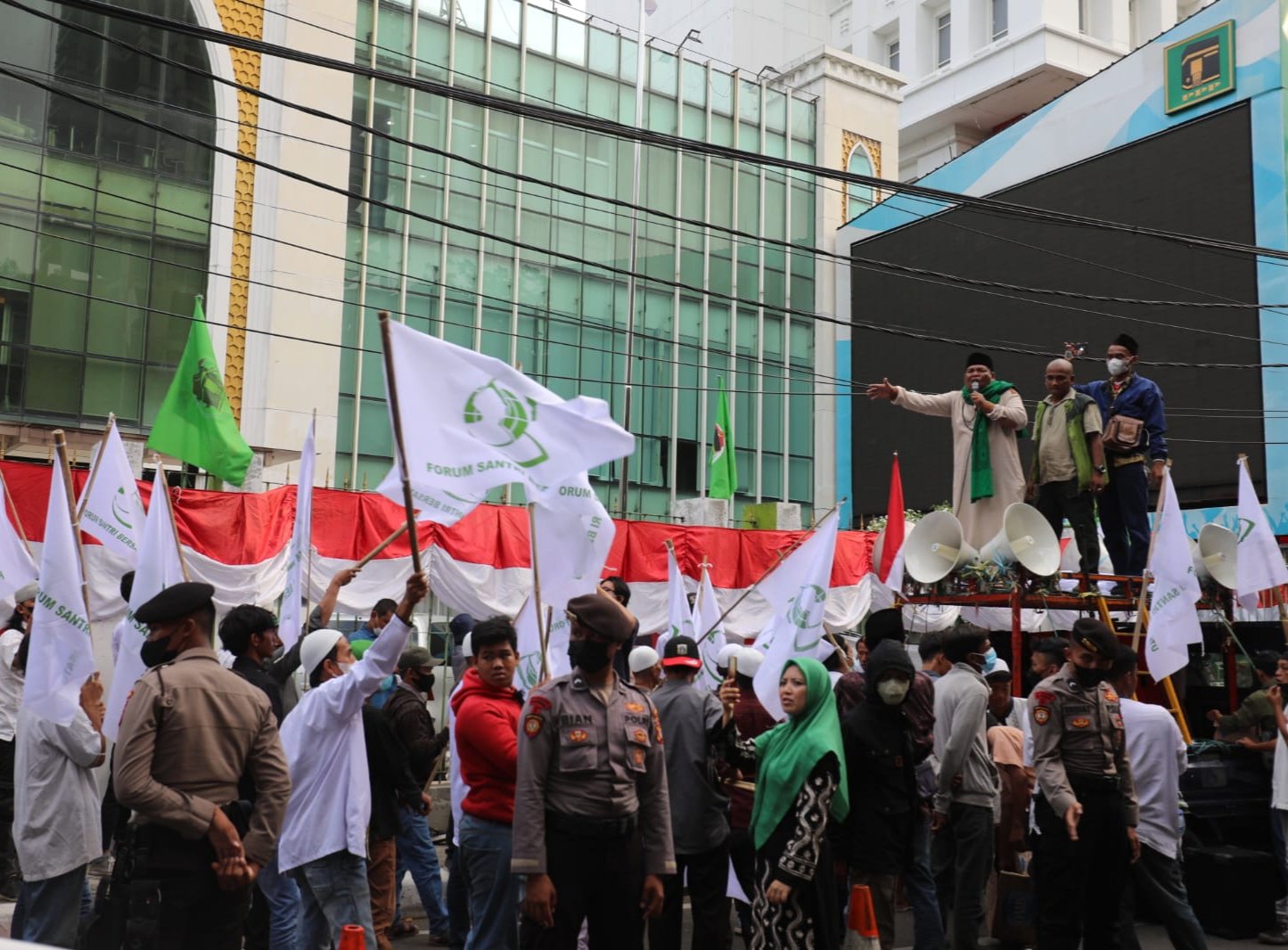 “Ini aksi tanpa ujung, sampai kapan pun kalau Suharso belum turun kami akan terus lakukan. Hari ini ada dua titik, di kawasan istana patung kuda ada juga santri yang bergerak melawan penista agama (Suharso),” tutur Muchbari di lokasi, Rabu (31/8/2022).