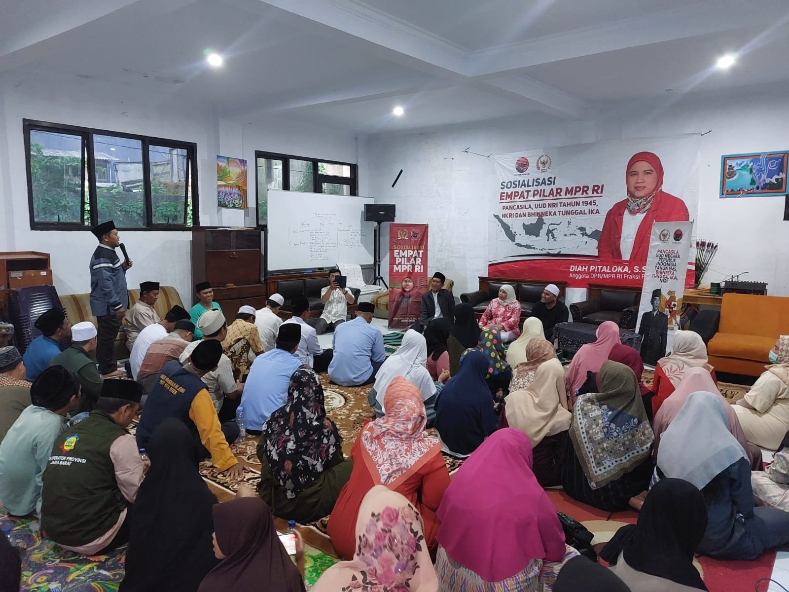 BOGOR, Harnas.id – MPR RI terus berupaya mensosialisasikan Empat Pilar kehidupan bermasyarakat, yaitu Pancasila, UUD tahun 1945, NKRI, dan Bhineka Tunggal Ika. Dalam upaya ini, Diah Pitaloka, Anggota DPR/MPR RI Fraksi PDI Perjuangan dapil Jabar III (Kota Bogor dan Kabupaten Cianjur), kembali melakukan sosialisasi Empat Pilar MPR RI di Pondok Pesantren Tahfidz Madrasah Diniah Al Haromain, Jalan Pelita Jaya Kelurahan Kedung Jaya Kecamatan Tanah Sareal Kota Bogor pada Jum’at, 21 Juli 2023.