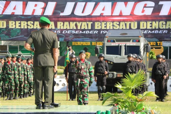 SENTANI, Harnas.id – Batalyon Infanteri 751/Vira Jaya Sakti pada peringatan Hari Juang TNI Angkatan Darat tahun 2023 dijajaran Kodam XVII/Cenderawasih mendapat kehormatan sebagai tuan rumah. Acara puncak tersebut digelar di Lapangan Upacara dan Aula Sumarsono Yonif 751/VJS, Distrik Sentani, Kab. Jayapura. Jum’at(15/12/2023).