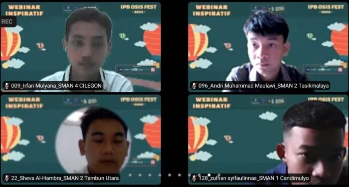 BOGOR, Harnas.id – Institut Pertanian Bogor (IPB) University menggelar Webinar Nasional IPB OSIS Fest 2022 yang digelar secara daring melalui zoom meeting, Minggu (25/9/2022).