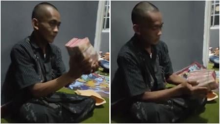 Dalam sebuah video yang diunggah akun X tersebut, Sunhaji tampak mengucapkan rasa syukur dan terima kasih kepada para donatur. Dengan wajah penuh haru, ia berkata: